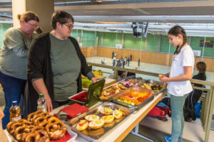 bei dem die Klassen gegeneinander antraten, um den Titel des Schulmeisters zu erringen. Am Ende des Turniers in der Erbighalle durften die Sieger der Schüler gegen eine Lehrermannschaft antreten. Insgesamt hatten alle Kinder viel Freude am Wettkampf, konnten aber auch gleichzeitig erfahren, das Fairplay und Respekt zum Sport dazugehören. Das Völkerball-Turnier war ein Highlight des Tages und zeigte die Schüler in ihrer besten Form. Mit viel Eifer und Teamgeist kämpften die Klassen um den Sieg. Die Atmosphäre war elektrisierend, und die Unterstützung durch die Zuschauer ließ die Spieler zu Höchstleistungen anspornen. Am Ende des Turniers standen die Sieger fest, die dann gegen eine Lehrermannschaft antreten durften. Dieser Abschlusswettkampf war nicht nur ein unterhaltsames Spektakel, sondern auch eine großartige Gelegenheit für die Schüler, ihre Fähigkeiten unter Beweis zu stellen und gleichzeitig etwas über Fairplay und Respekt im Sport zu lernen. Während der Pausen konnten die Schüler und Lehrer ein von Frau Faller, Frau Hess, Frau Wagner und Frau Kolb vorbereitetes Buffet genießen, das reichlich Obst und Gemüse bot. Ein besonderer Dank gilt hierbei der Firma Melzig, die diese leckeren und gesunden Lebensmittel großzügig spendete. Die Möglichkeit, sich mit frischen Produkten zu stärken, war nicht nur lecker, sondern auch ein wichtiger Aspekt des Tages, da gesunde Ernährung eine entscheidende Rolle für die körperliche und geistige Gesundheit spielt. Ziel des Tages war es, dass die Kinder spielerisch erfahren, durch regelmäßigen Sport ihre Koordinationsfähigkeiten zu verbessern, ihr Selbstvertrauen zu stärken und zu lernen, im Team zu arbeiten. Gleichzeitig unterstützt eine ausgewogene Ernährung die körperliche Entwicklung, fördert die Konzentrationsfähigkeit und hilft, Energie und Vitalität zu erhalten. Die Kombination aus Sport und gesunder Ernährung kann auch dazu beitragen, das Risiko für Übergewicht, Diabetes und andere gesundheitliche Probleme zu reduzieren, die durch ungesunde Lebensweise begünstigt werden. Gesunde Ernährung und regelmäßige körperliche Aktivität sind für Schulkinder von unschätzbarem Wert.